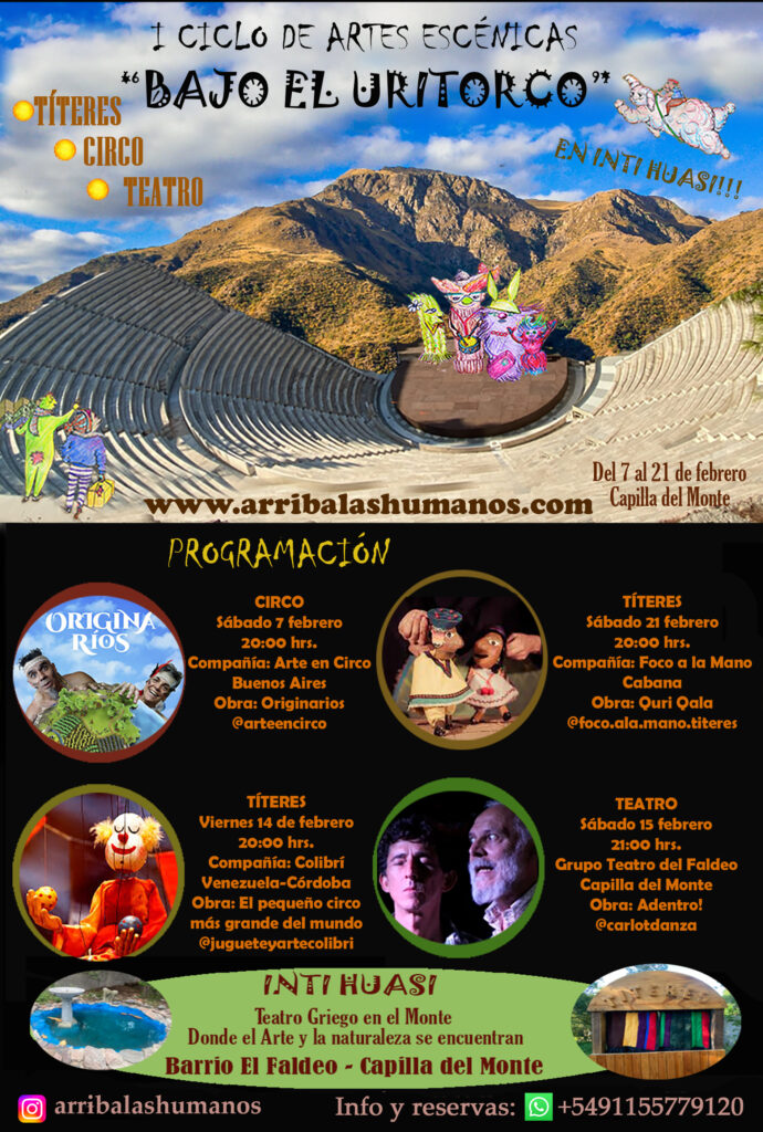 En el 2013, habiendo participado en numerosos Festivales de Latinoamérica, Arriba Las Hu! Manos comienza a proponer, gestionar, dirigir y producir Festivales Itinerantes de Títeres, recibiendo Artistas de todo el mundo y acercando el milenario arte de los títeres desde y hasta a los poblados más recónditos. Contribuyendo a la descentralización, redistribución e intercambio del Arte y la Cultura, nuestros Festivales proponen ir al encuentro de las más distantes audiencias de la mano de Compañías y Artistas que convocamos de nuestras mejores experiencias itinerantes de América, Europa y Asia. Seguir leyendo(+)