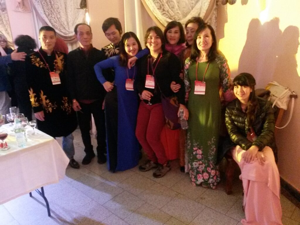 En varios momentos sociales del festival, como en el brindis de apertura en el que nos encontrábamos todas las compañías presentes, o en la cena de cierre, pudimos acercarnos y compartir con ellos, intercambiar miradas, sonrisas, algunas opiniones, mientras hacíamos “cham cham”, como se le denomina al brindis en Vietnam. Luego de lo cual, apodamos cham cham a uno de los varones del elenco con quién más nos relacionamos, y con quien nos reencontramos en Hanoi. En esos encuentros surgió un vínculo con la compañía que nos dejaría en comunicación para poder organizar más adelante nuestra visita a Vietnam y poder actuar con nuestro teatro de tierra, que es como nos denominaron, en la ciudad Hanoi. En su Teatro estable cuentan con tres salas de teatro donde se realizan presentaciones. Nuestra visita a Vietnam sucedería en enero del siguiente año, el 2018, y así no sólo tendríamos nosotros la posibilidad de actuar y mostrar nuestro trabajo artístico y de tierra en Vietnam sino también la anhelada posibilidad de ser espectadores de su espectáculo de Títeres de agua!!